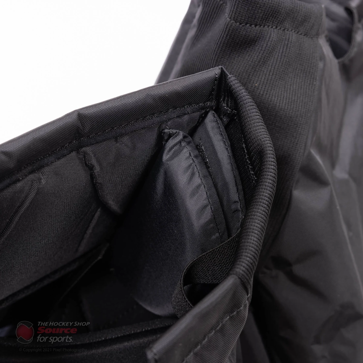 The 1.5 Junior has an external waist closure, as well as an internal belt. The Fit + internal belt featured on the 1.5 Junior allows the goalie to have a tighter fit, without sacrificing the coverage of tightening the external belt.
