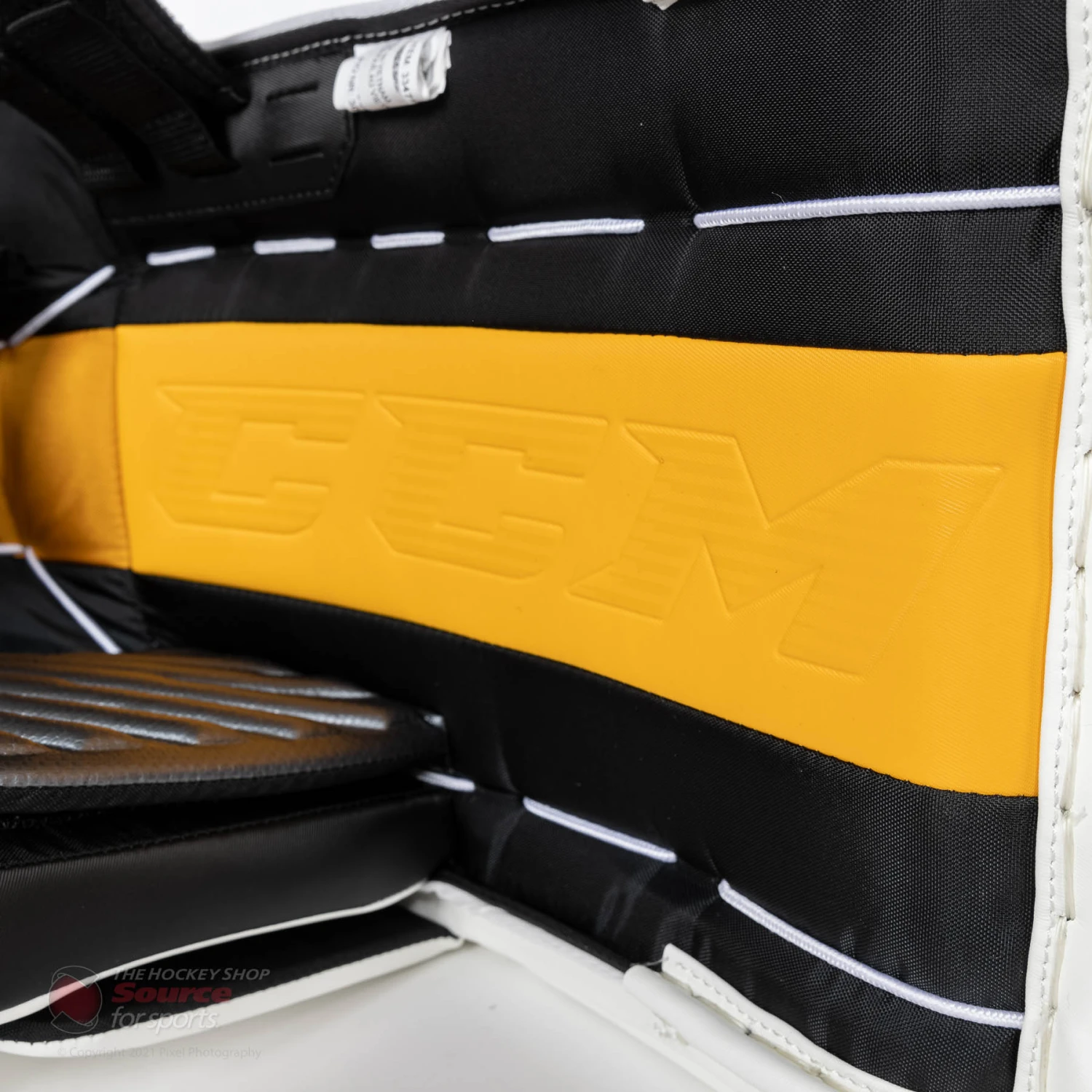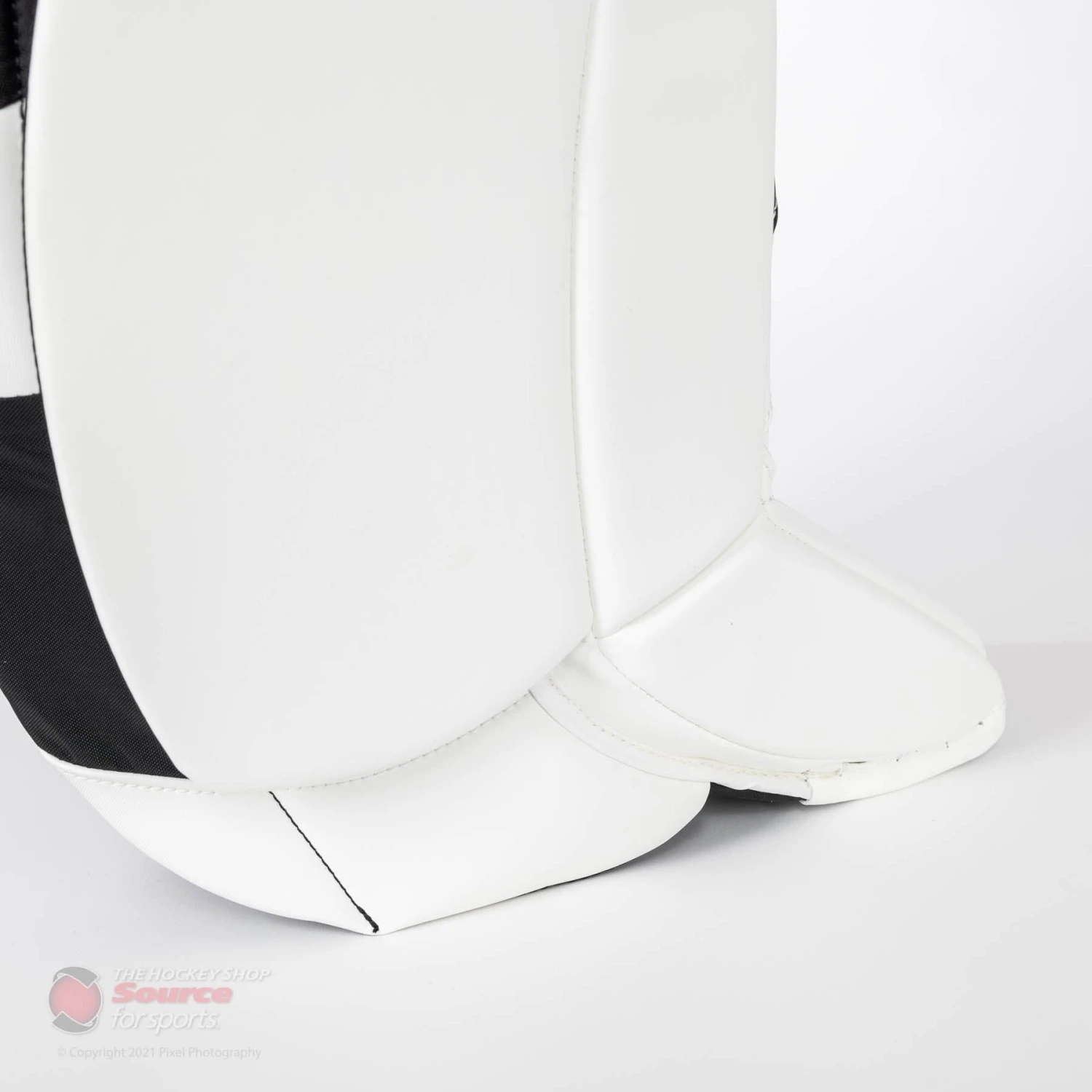 The CCM Extreme Flex E5.9 SR Goalie Leg Pads are a stock only color offering, available in the following colorways; Boston, Chicago, Detroit, Montreal, Toronto, All White, White / Black, and White / Navy. The E5.9 SR Leg pads are available in sizes 33+1 through 35+2.
