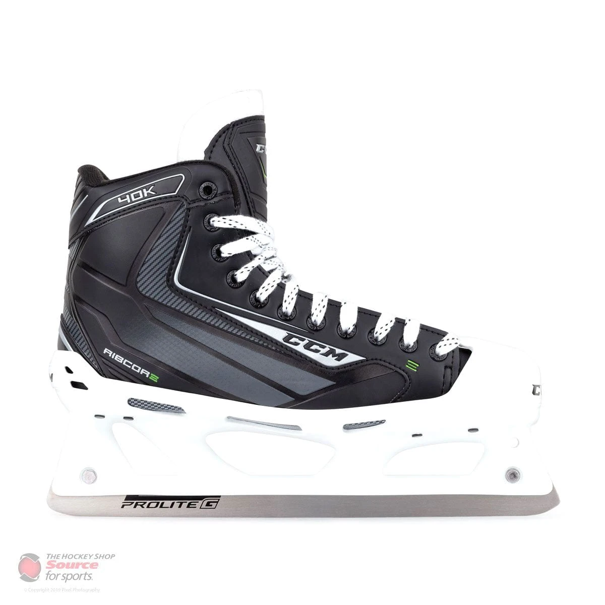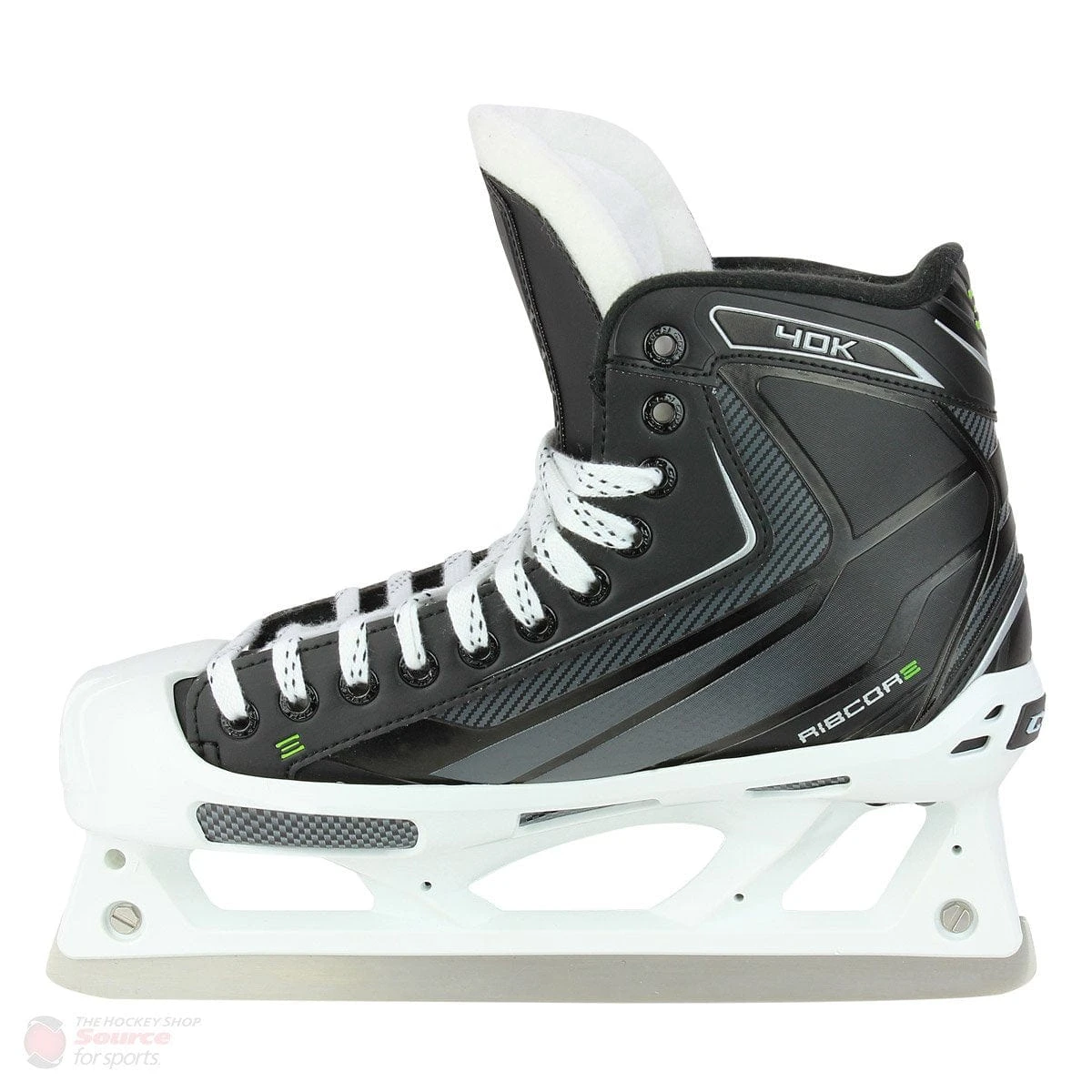 The CCM RIBCOR 40K goal skate is designed with growing and/or recreational goalie in mind. The elite synthetic quarter package makes for a softer, more comfortable fit off the shelf. Brushed nylon is used for the liner, to reduce weight and increase comfort on the goalie’s foot over an extended period of time. A two-piece felt tongue not only makes the skates more comfortable, but also decreases the chances of lace-bite. The ProLite GS cowling is designed to reduce the necessary attack for making pushes, and is reinforced with extra plastic inserts. Partnered with the cowling is a 4mm Prolite G stainless steel runner to provide superior edge life and long term performance.