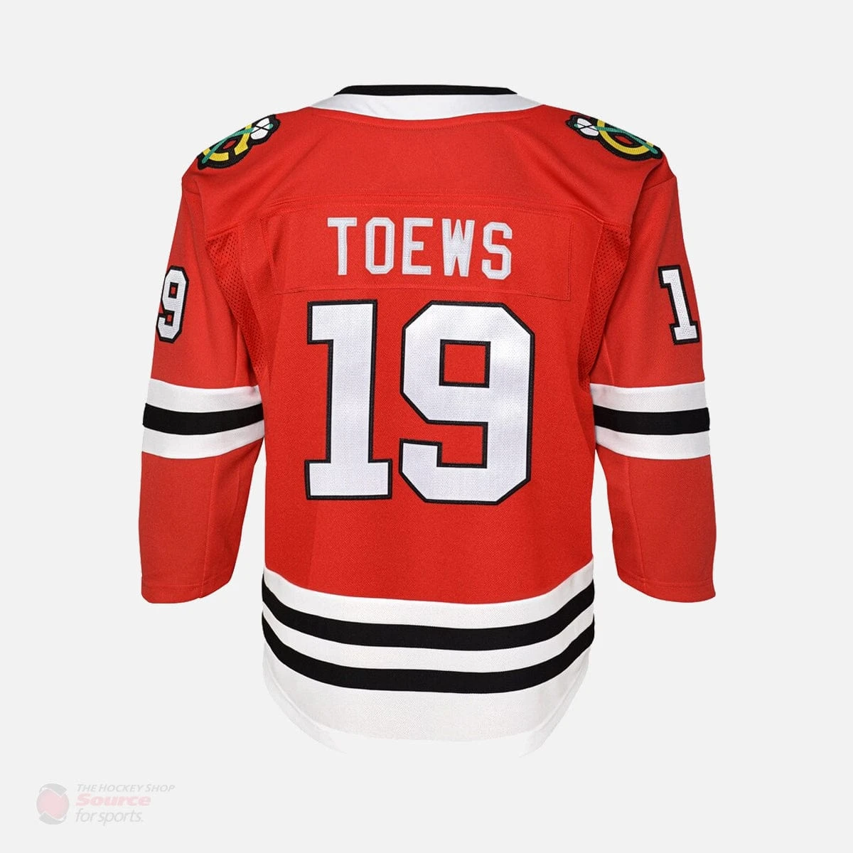 The Chicago Blackhawks Home Outer Stuff Replica Junior Jonathan Toews Jersey is officially licensed with the NHL. Featuring authentic feeling material, and crisp team logos, the Outerstuff Replica Breakaway Hockey Jersey is the perfect way to show off your team spirit!