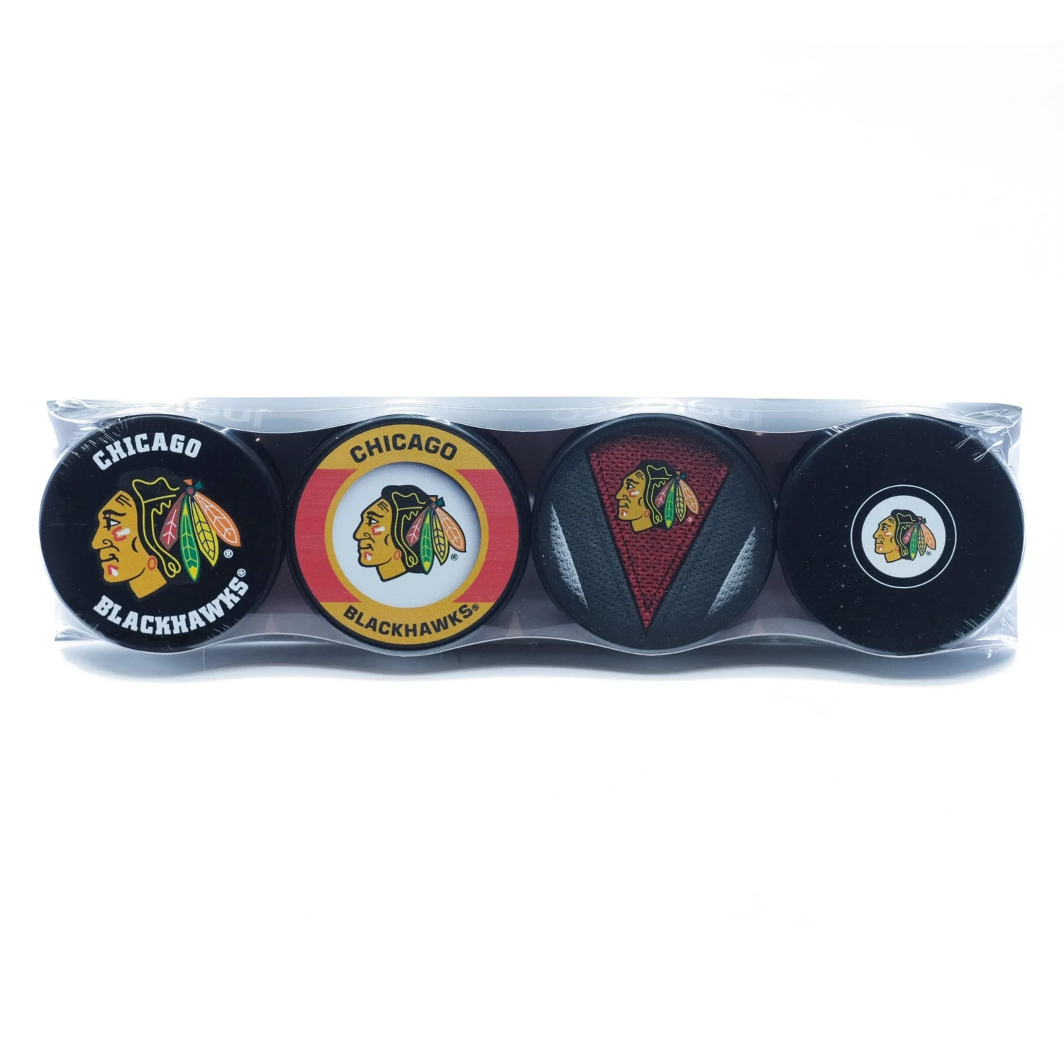 You’re a hockey fan and you should show it off. Represent your favourite NHL team in 4 different styles with the NHL Logo Hockey Puck 4-Pack. Each pack includes a basic logo puck, retro logo puck, stitch logo puck, and autograph logo puck.Â