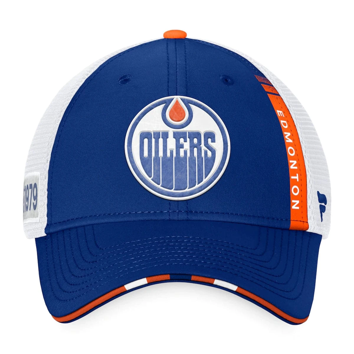 Get excited for the upcoming season as the Edmonton Oilers add fresh, new talent to their lineup by grabbing this 2022 NHL Draft Authentic Pro On Stage Trucker Adjustable Hat. Its high crown adds style while its mesh panels add ventilation, keeping you comfortable all day long. This Fanatics Branded gear sports the same design and Edmonton Oilers graphics that the players will be wearing during the draft, ensuring that you always look and feel like the real deal.