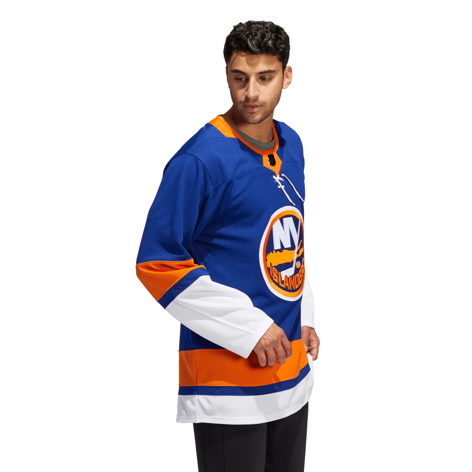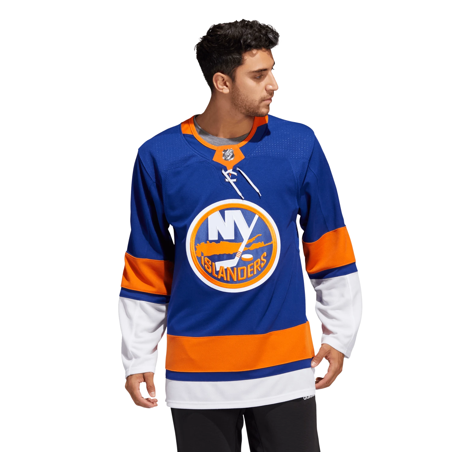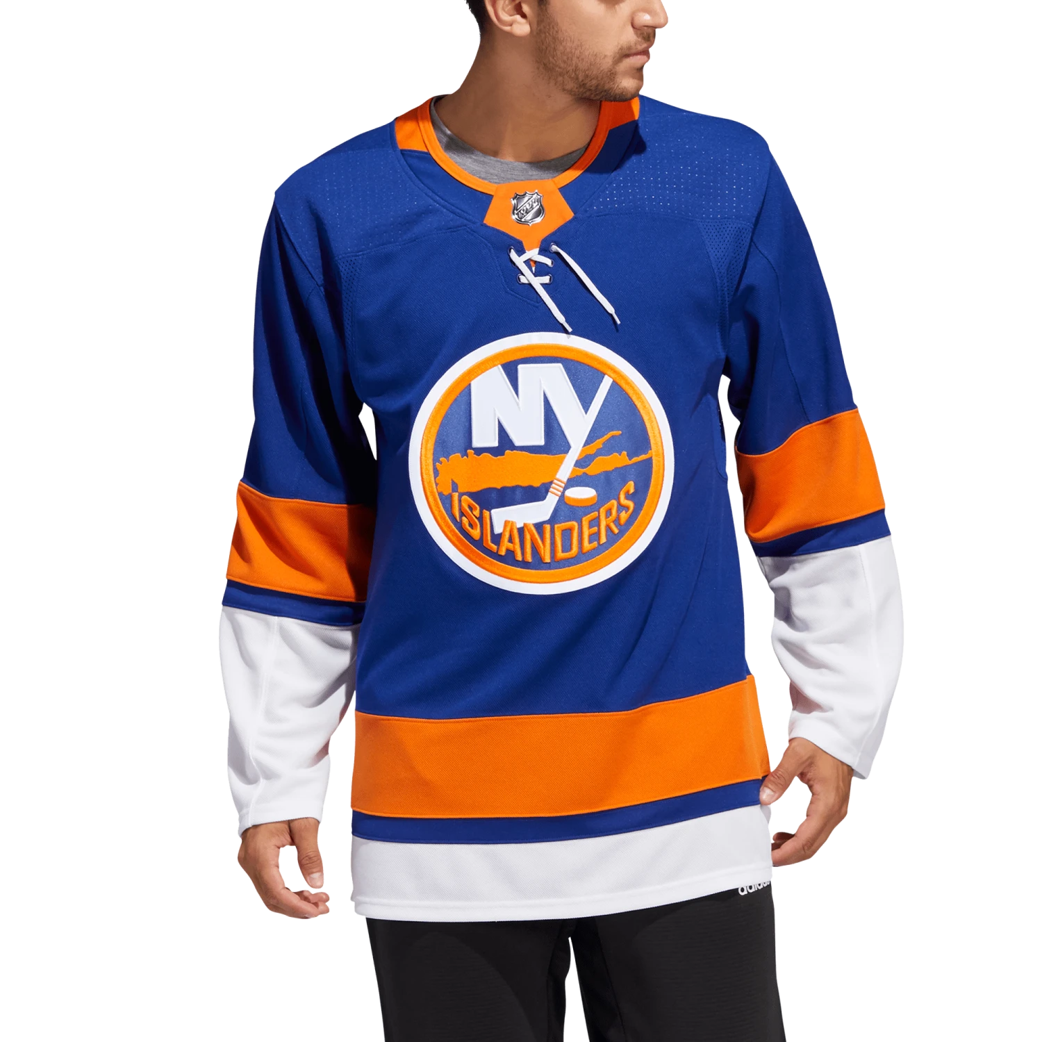Pull on this adidas New York Islanders authentic home jersey, and get the gang together for game night in your fan cave. AEROREADY keeps you cool and dry as you wait for the puck to drop at center ice. The big crest out front, shoulder patches and a fight strap with a snap closure keep the look legit. This product is made with Primegreen, a series of high-performance recycled materials.