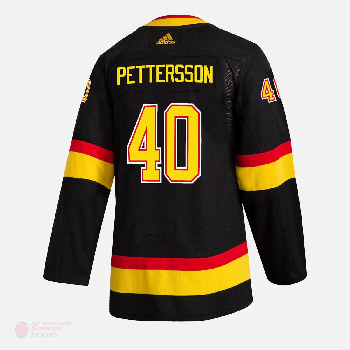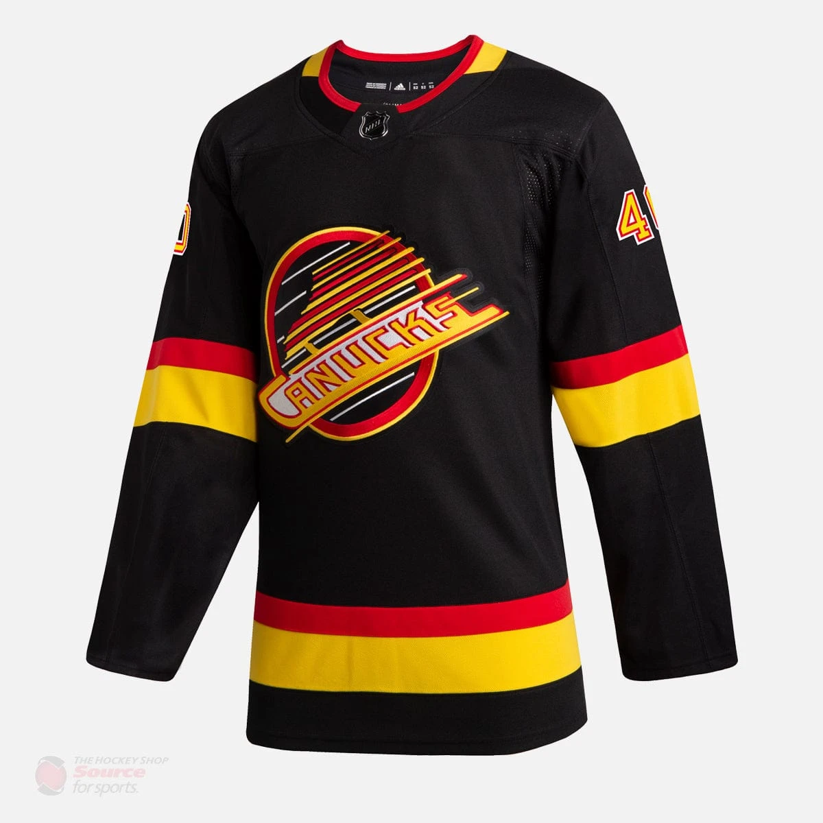 The Vancouver Canucks Skate Adidas Authentic Senior Jersey – Elias Pettersson is an officially licensed jersey of the NHL. The new and improved authentic team jerseys show your devotion to your favourite team, with the addition of the original Adidas climalite technology to maximize mobility and enhance performance. The new touch of the sewn, platinum NHL Shield under the front collar gives these jerseys its finishing touch on becoming the new look of the NHL.