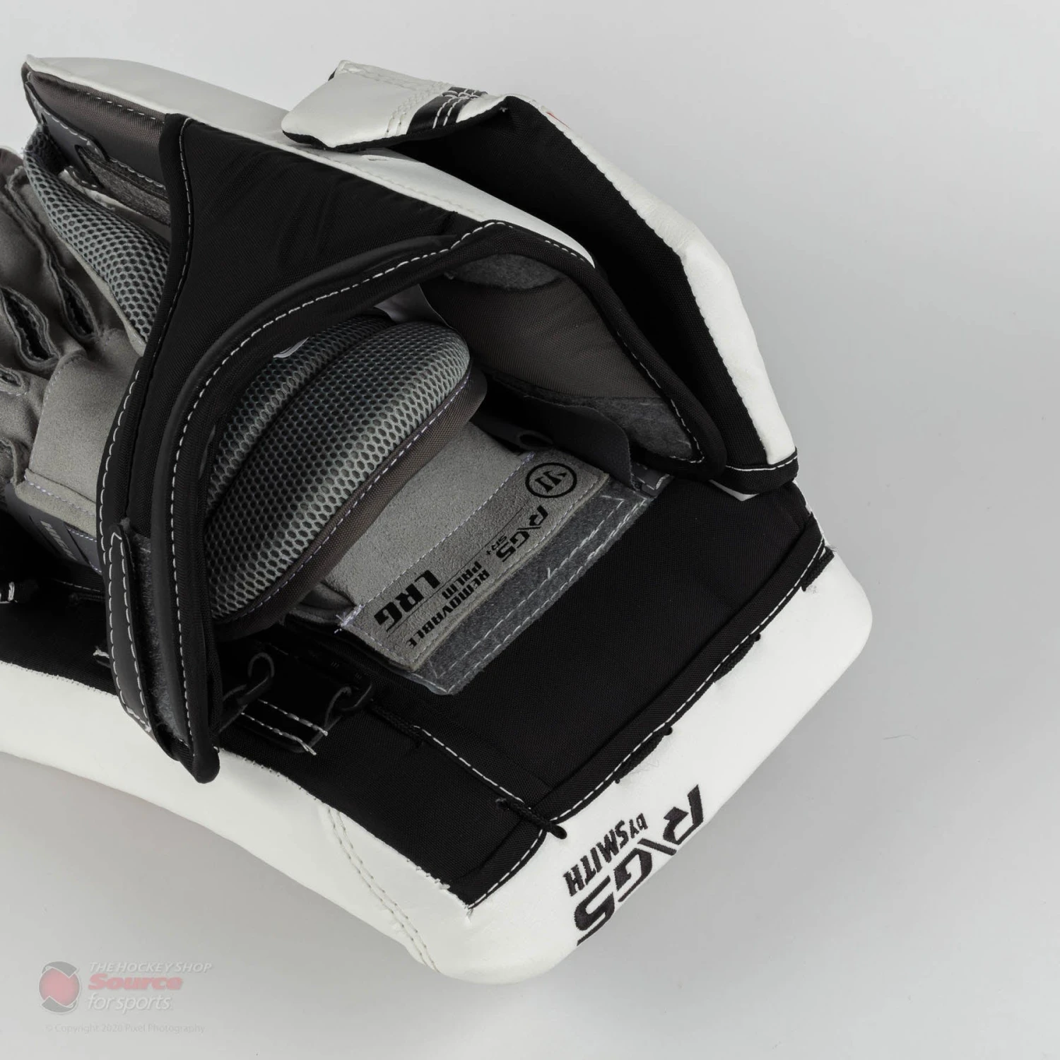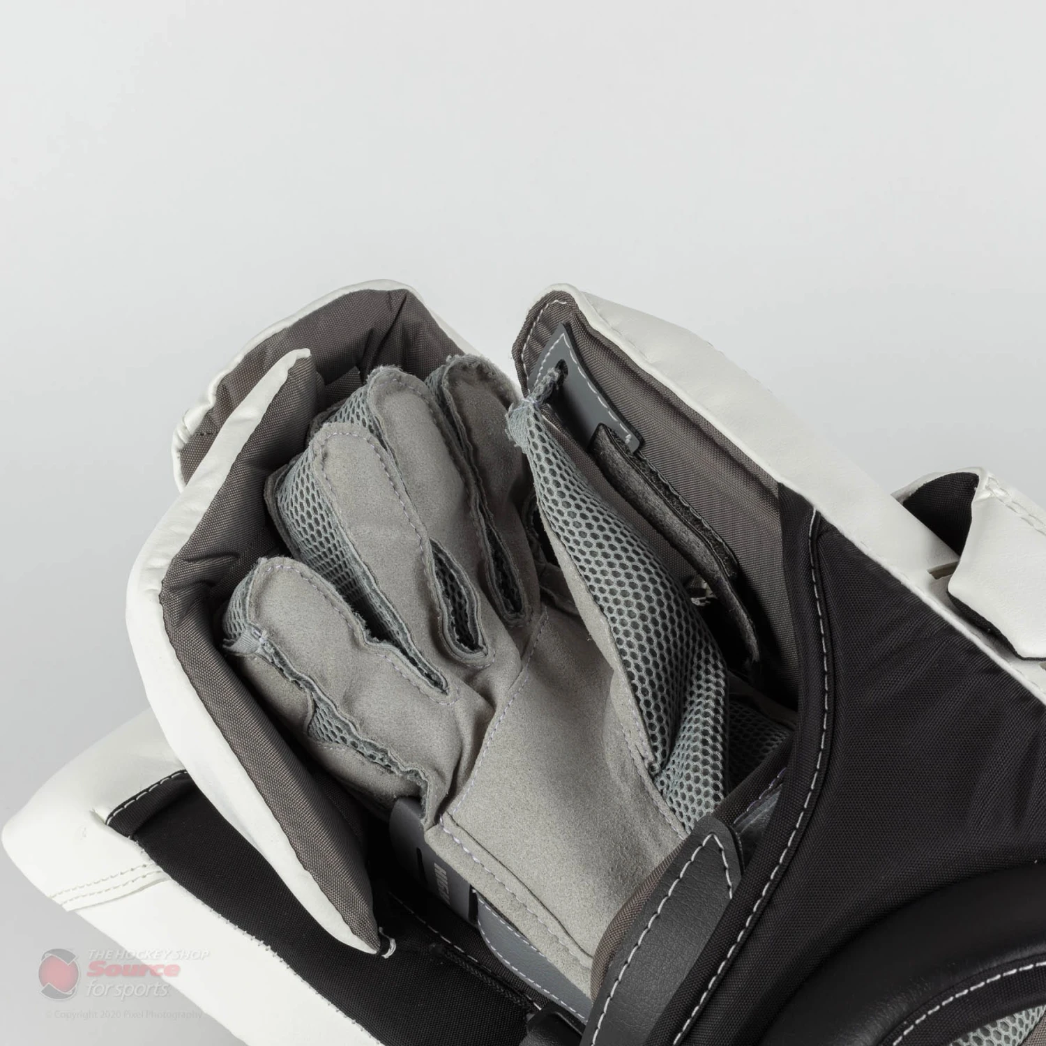 One of the lightest blockers on the market, the Warrior Ritual G5 SR+ looks to improve on performance while keeping the blocker as light as possible. New this year is Warrior’s innovative CoverEDGE+ technology that maximizes coverage with their new face forward design, taking away more of the shooter’s angle while the goalie maintains the same positioning.